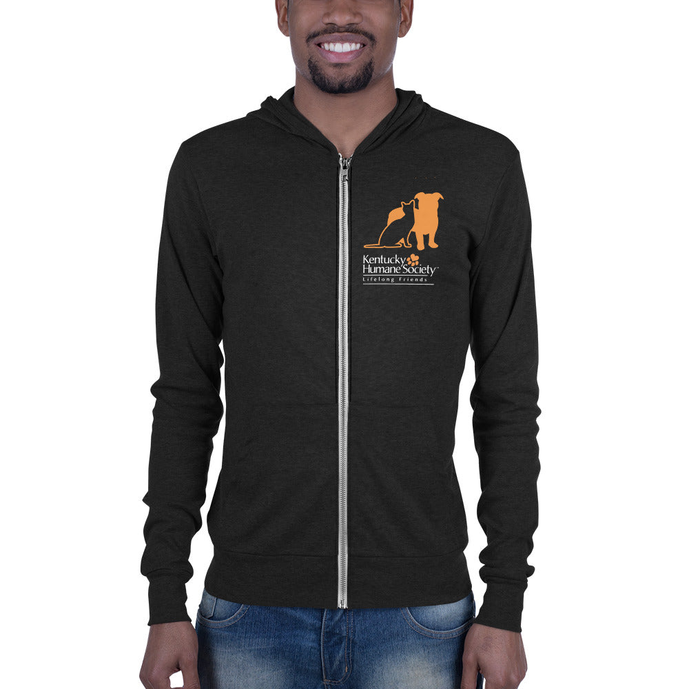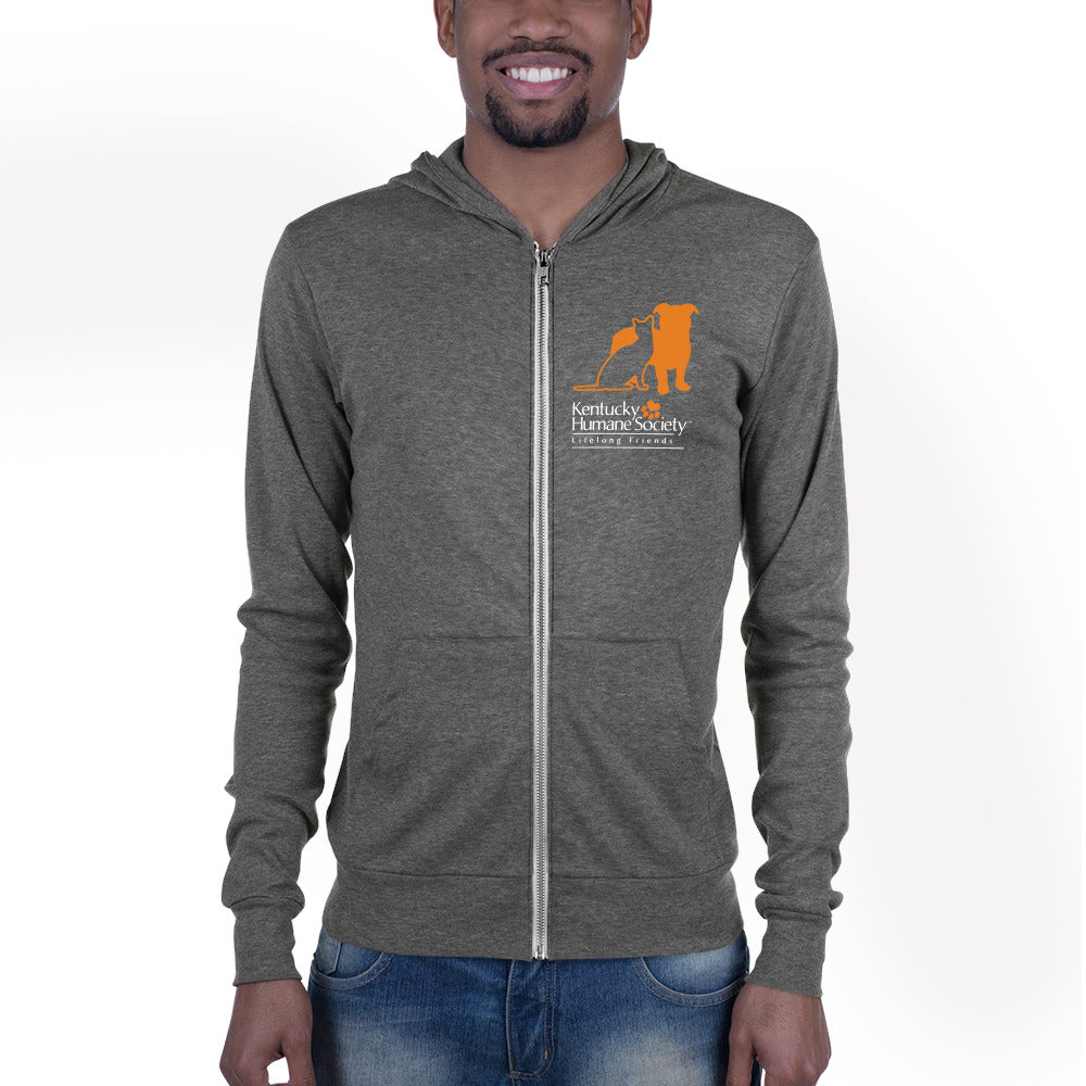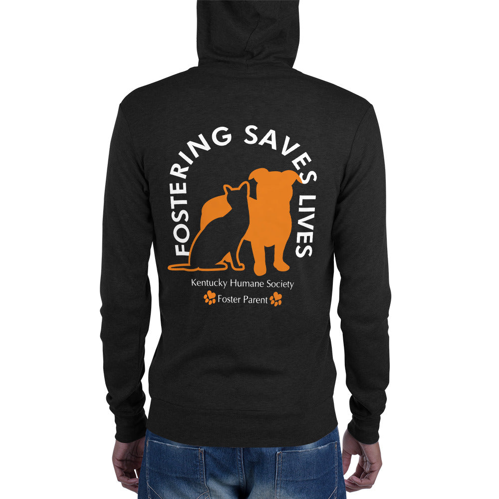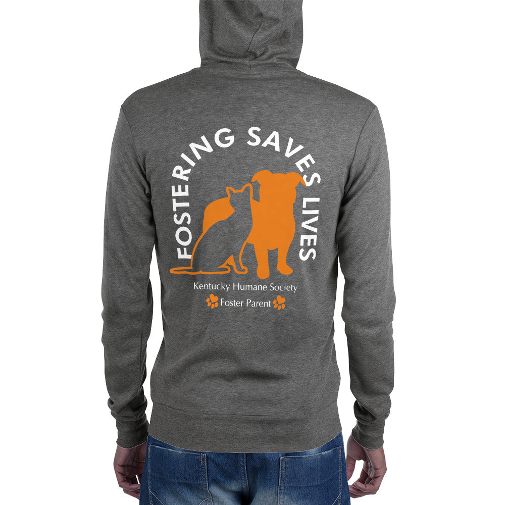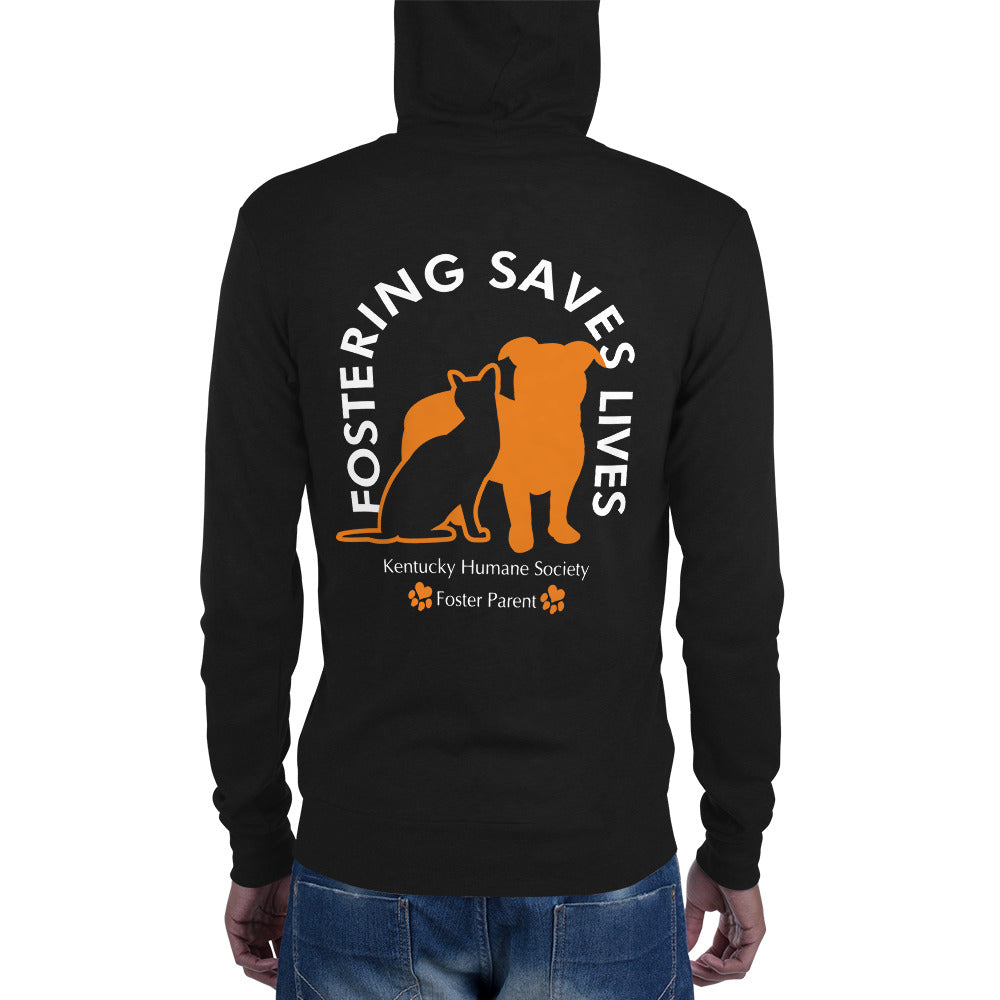 This lightweight unisex zip hoodie with a modern fit, hood, front zip, and a kangaroo pocket is perfect for KHS Foster Parents on the go!